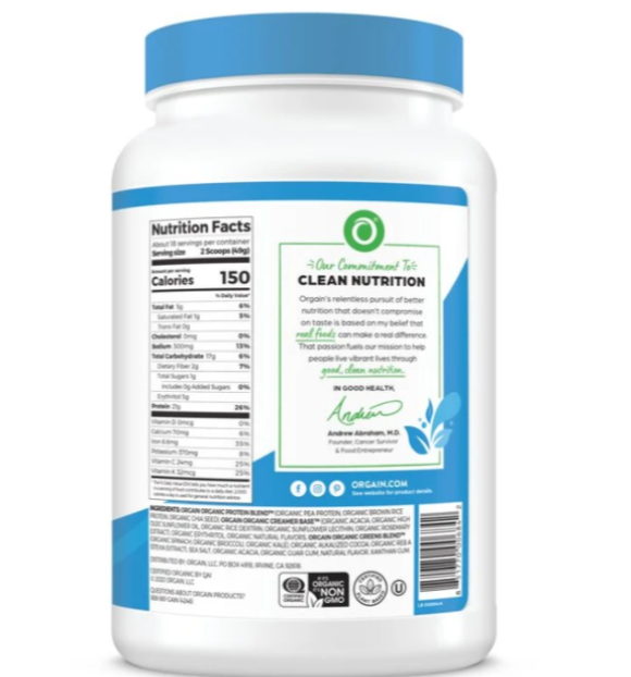 Bột đạm thực vật và Greens hữu cơ Orgain Organic Protein Greens vị socola 882g
