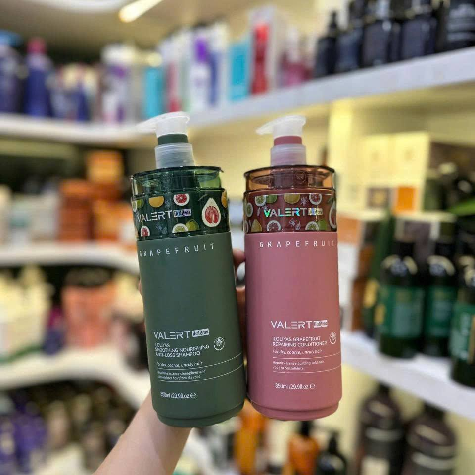 Cặp dầu gội xả tinh chất bưởi Grapefruit với 2 thành phần chính là tinh dầu vỏ bưởi và tinh dầu hoa bưởi hỗ trợ giúp làm sạch, nuôi dưỡng, giảm gãy rụng tóc và phục hồi tóc hư tổn.