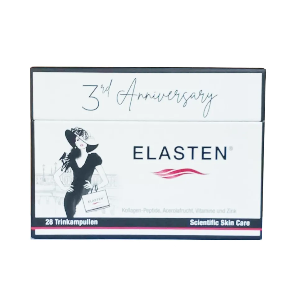 Collagen Elasten dạng nước chứa collagen thủy phân, vitamin C, kẽm,...giúp hỗ trợ duy trì độ đàn hồi, săn chắc cho da và cải thiện các dấu hiệu già hóa. Sản phẩm bào chế dạng nước với hương vị cherry thơm ngọt, chua nhẹ dễ uống.