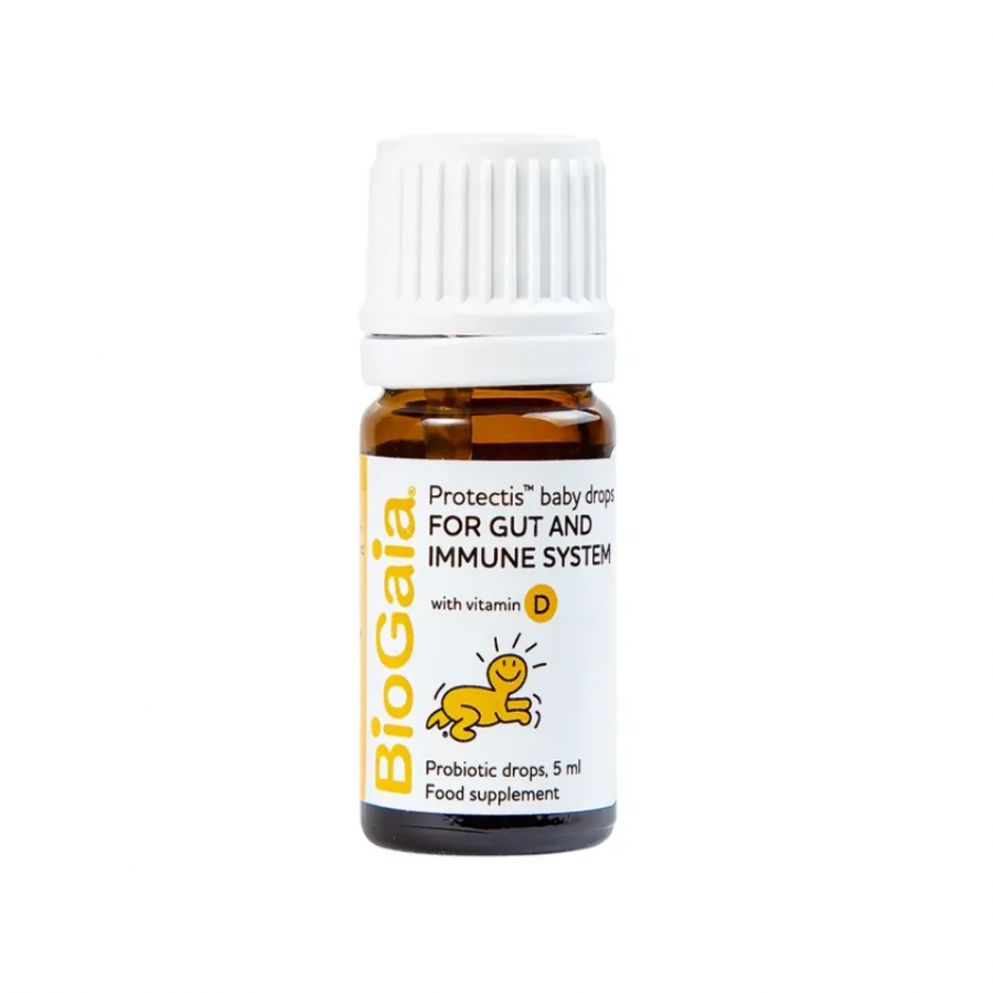 Men vi sinh BioGaia Protectis + Vitamin D3 cho bé giúp bổ sung lợi khuẩn cùng vitamin D3 hỗ trợ cải thiện hệ vi sinh đường ruột, tăng cường tiêu hóa. Công thức dạng nhỏ giọt tiện dụng, không chứa hương liệu, chất tạo màu hay chất bảo quản.