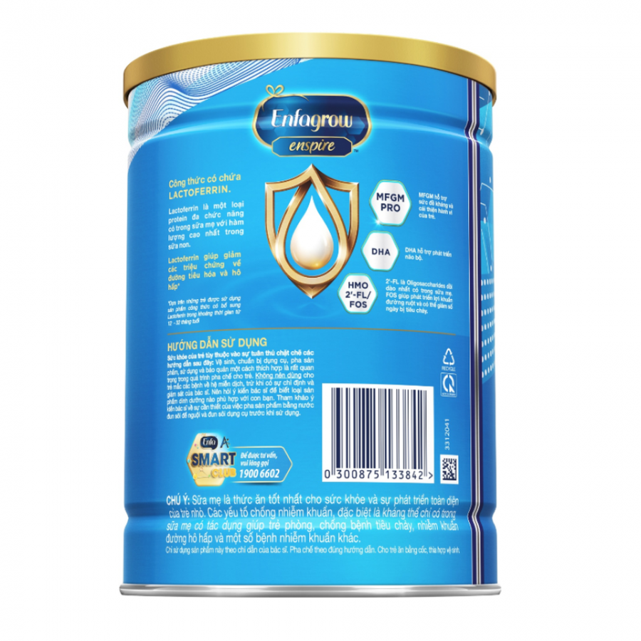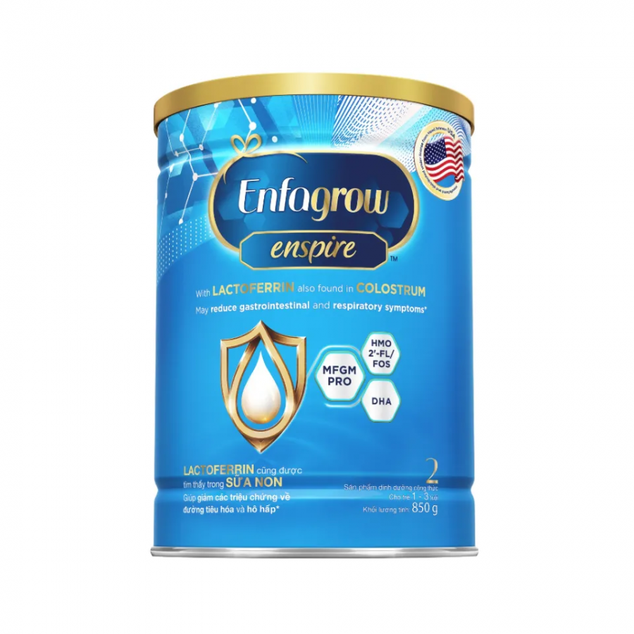 Sữa Enfagrow Enspire số 2 cho trẻ từ 1-3 tuổi nổi bật nhờ sự kết hợp tiên tiến giữa Lactofer.rin, DHA, MFGM Pro, chất xơ FOS và hệ chất HMO - các thành phần có trong sữa non, giúp hỗ trợ tiêu hóa và tăng cường miễn dịch cho bé phát triển khỏe mạnh và nhanh nhẹn hơn từng ngày.