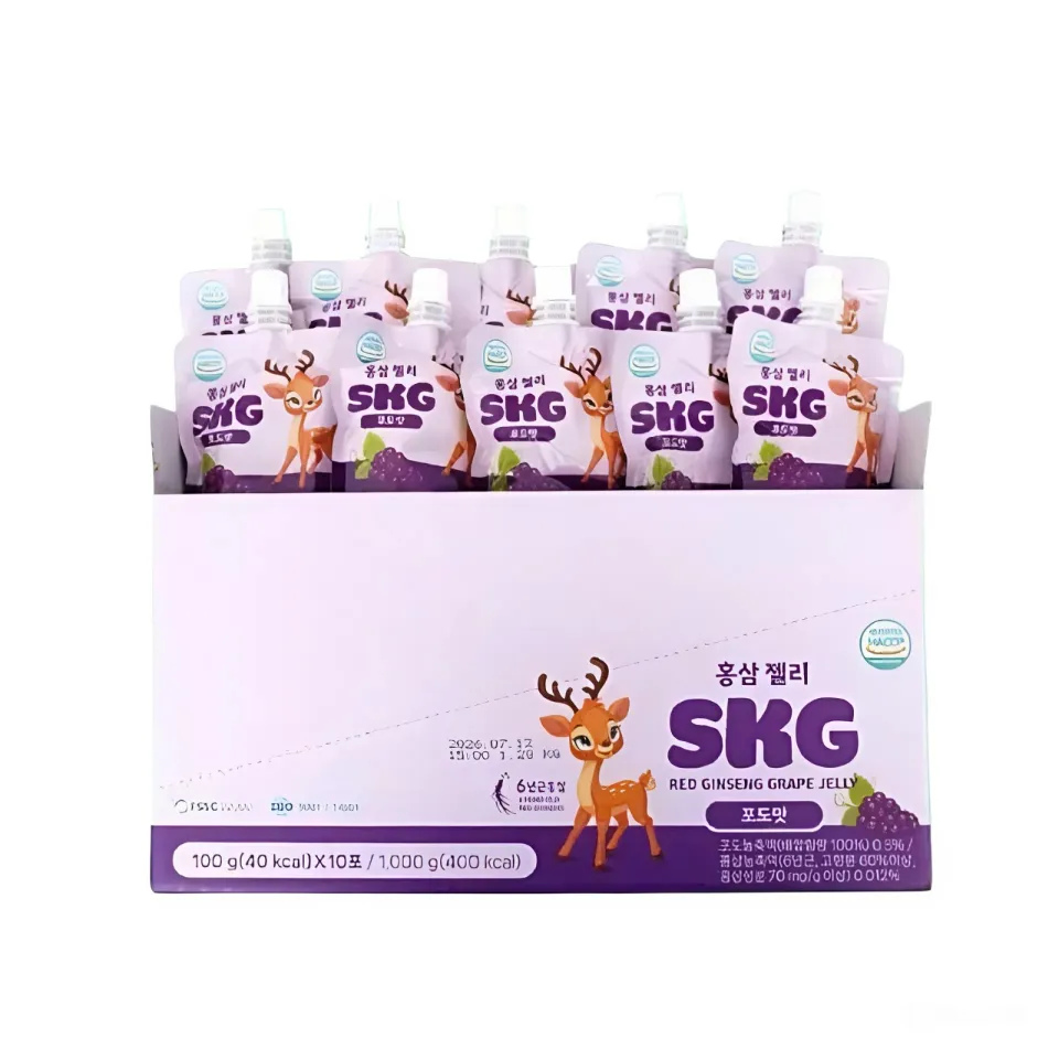 | Tên sản phẩm | Thạch hồng sâm trẻ em vị nho SKG Hàn Quốc |