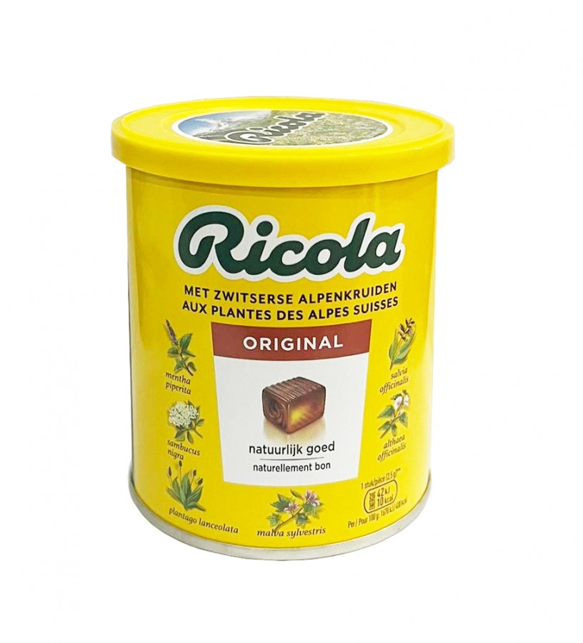 Kẹo ngậm thảo mộc Ricola Schweizer Kräuterzucker là sản phẩm kẹo ngậm với thành phần thảo mộc tự nhiên ngậm giúp hỗ trợ giảm ho, làm dịu mát họng, thơm miệng. Phù hợp với trẻ từ 6 tuổi trở lên, người lớn