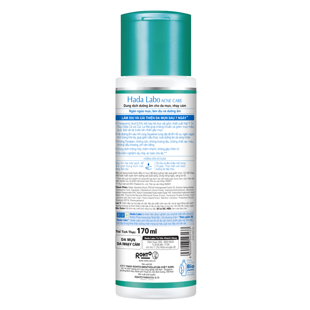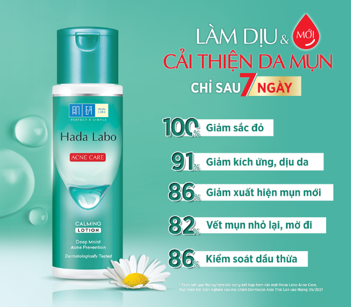 Hada Labo Acne Care Calming Lotion là sản phẩm hỗ trợ làm đẹp da, dung dịch chứa thành phần T.X.A và hệ thực vật hỗ trợ cấp ẩm, giảm nhờn mụn. Ngoài ra sản phẩm còn chứa HA và Squalane có khả năng cấp ẩm tối ưu và kiểm soát dầu thừa, bã nhờn trên da