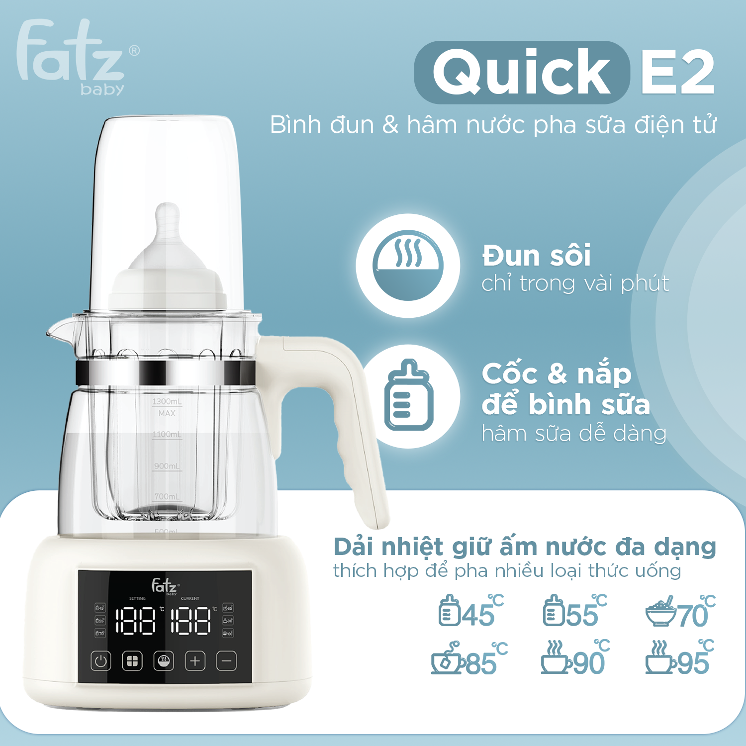 Máy đun và hâm nước pha sữa cho bé Fatzbaby Quick E2 FB3507HB