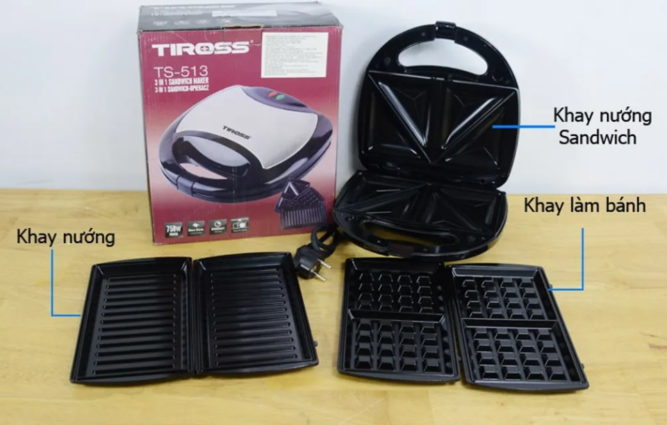 | Tên sản phẩm | Máy nướng, kẹp bánh đa năng 3in1 Tiross TS513 |