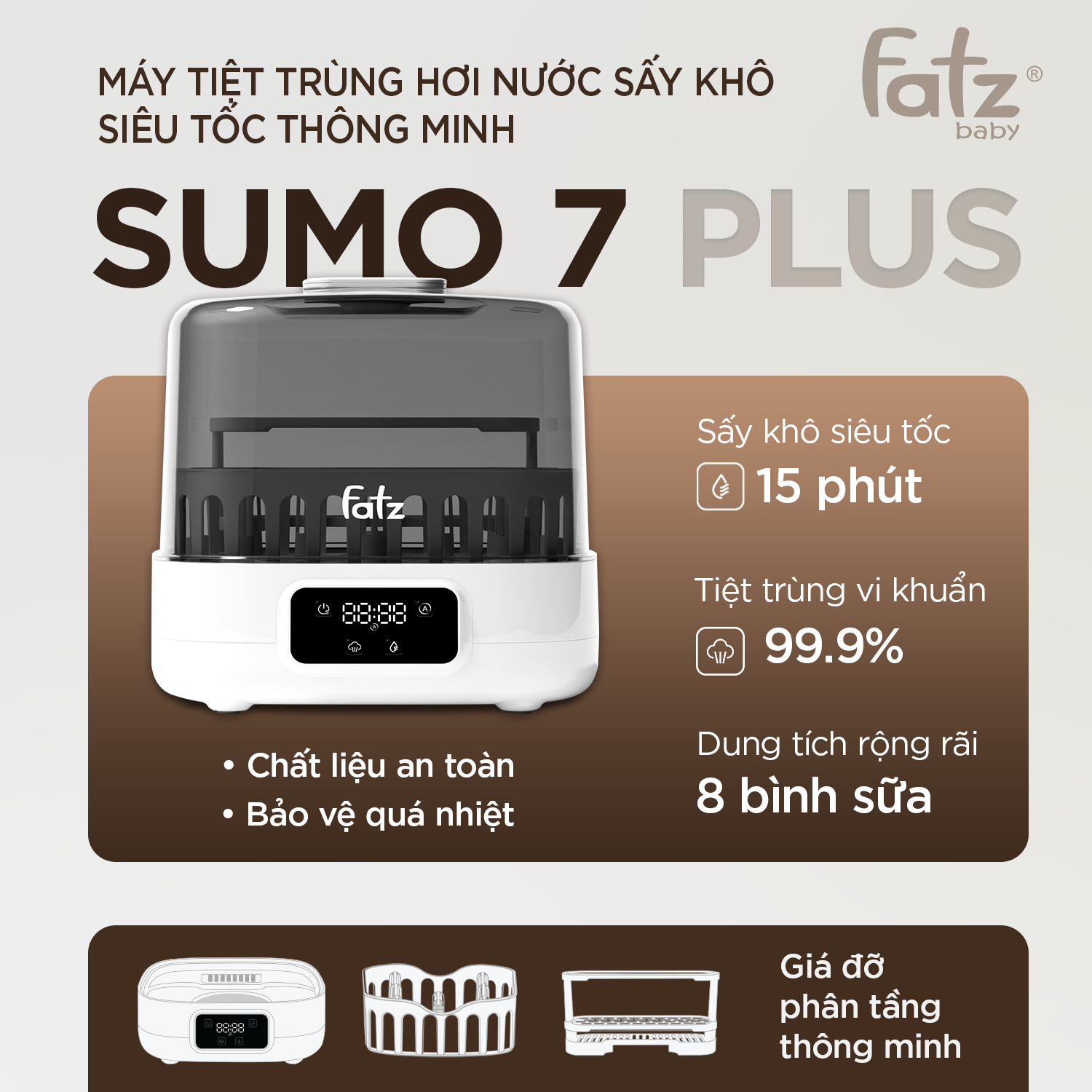 Máy tiệt trùng hơi nước sấy khô thông minh Fatzbaby Sumo 7 Plus FB4935VN công nghệ tiệt trùng sấy khô siêu tốc thông minh cùng công suất lớn , sấy khô nhanh, tiện dụng. Chất liệu cao cấp, bền bỉ