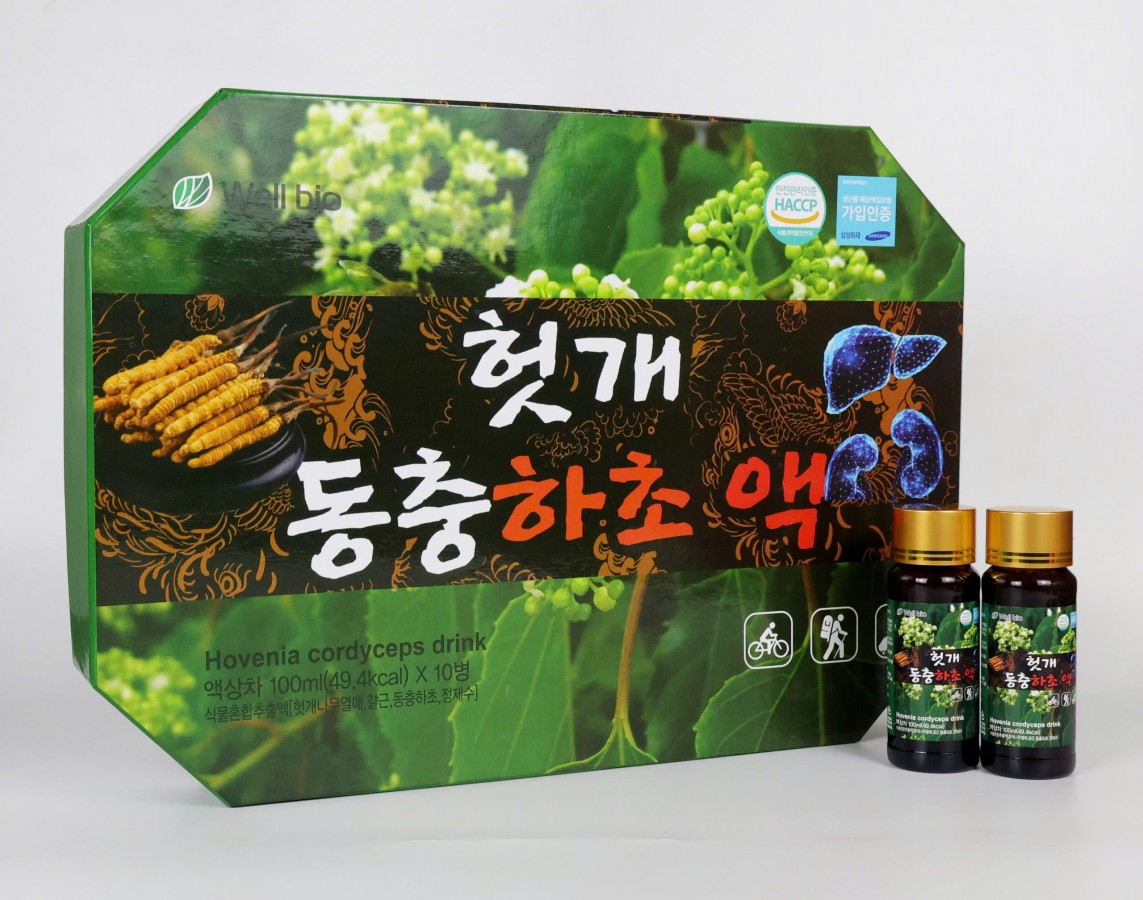 Nước đông trùng hạ thảo Well Bio Hovenia Cordyceps Drink hỗ trợ giải độc làm mát gan, thanh nhiệt giảm mụn nhọt, đẹp da, đồng thời hỗ trợ sức khoẻ, tăng đề kháng , dạng lỏng đóng chai tiện dụng, hương vị ngon dễ dùng