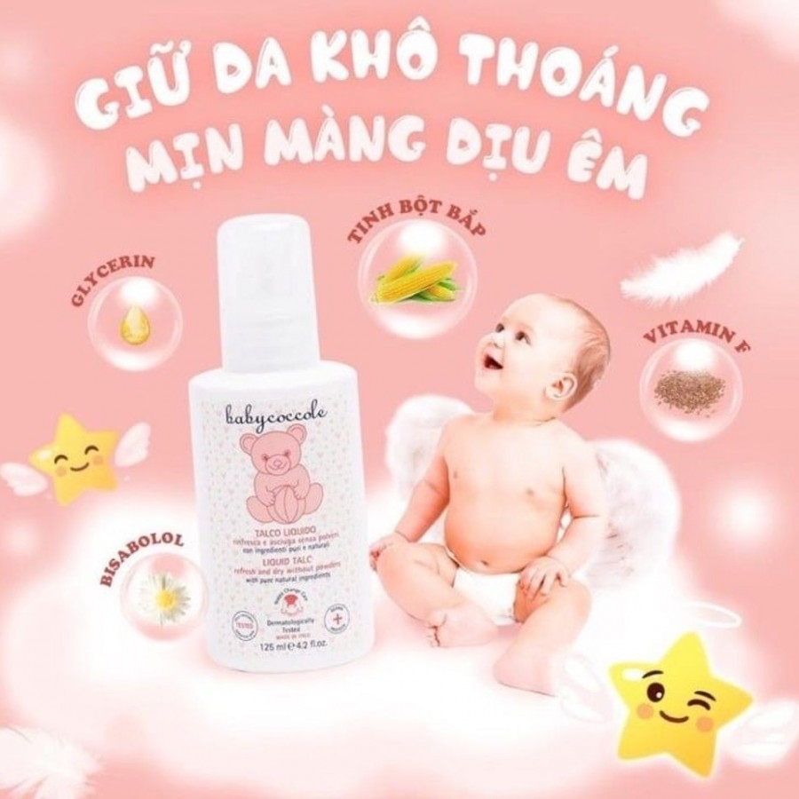 Phấn rôm nước cho bé Babycoccole 0M+ là giải pháp cho trẻ sơ sinh, giúp ngăn hăm tã và rôm sảy mà không gây bụi phấn. Với chiết xuất tinh bột bắp và công thức Derma Protech, sản phẩm thấm nhanh, dưỡng ẩm, làm dịu da, không nhờn rít, đã được kiểm nghiệm lành tính cho làn da nhạy cảm.