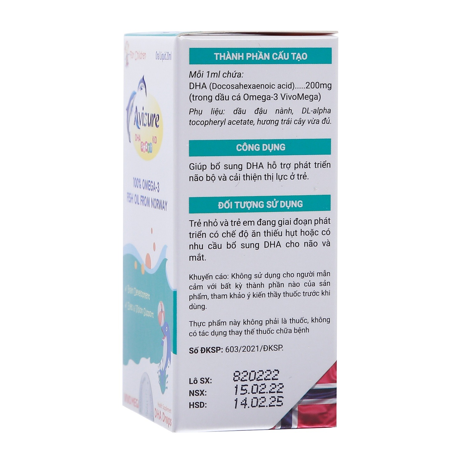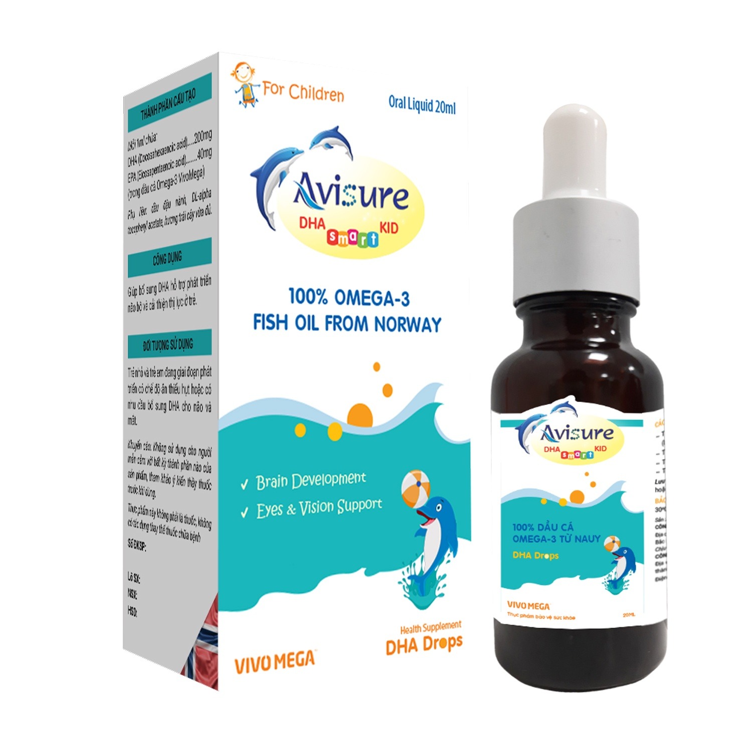 Avisure DHA cho bé giúp bổ sung dầu cá Omega 3 nhập khẩu tại Nauy - quốc gia nổi tiếng cung cấp sản lượng dầu cá tự nhiên sạch trên thế giới, ứng dụng Vivo mega Châu Âu, cho ra đời dòng DHA tinh khiết gấp 2.6 lần tiêu chuẩn chung, hỗ trợ phát triển trí não, thị lực cho bé