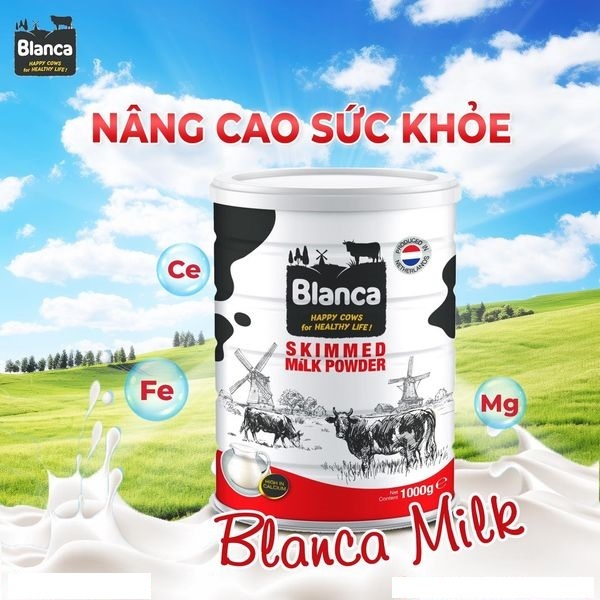 Sữa tươi Blanca Hà Lan dạng bột tách béo với nguồn nguyên liệu sữa tươi từ đàn bò chăn thả tự nhiên, hàm lượng dưỡng chất cao, tách béo với chỉ 0.7% chất béo, giúp giảm thiểu lượng chất béo nạp vào cơ thể mà vẫn duy trì hàm lượng đạm cao và canxi dồi dào
