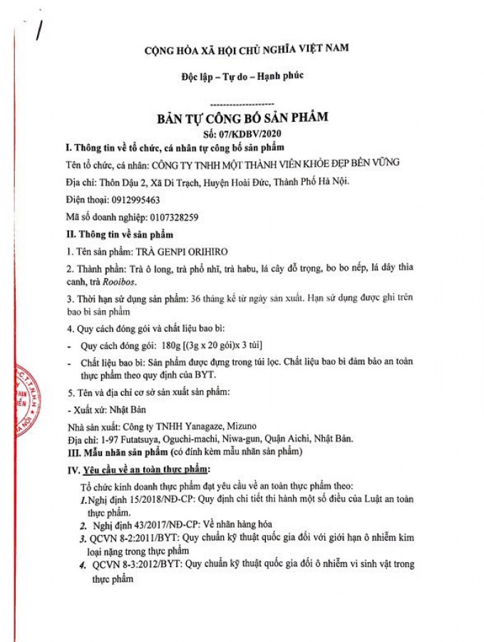 | Sản phẩm | Trà hỗ trợ giảm cân Orihiro Genpi Tea Nhật Bản |
