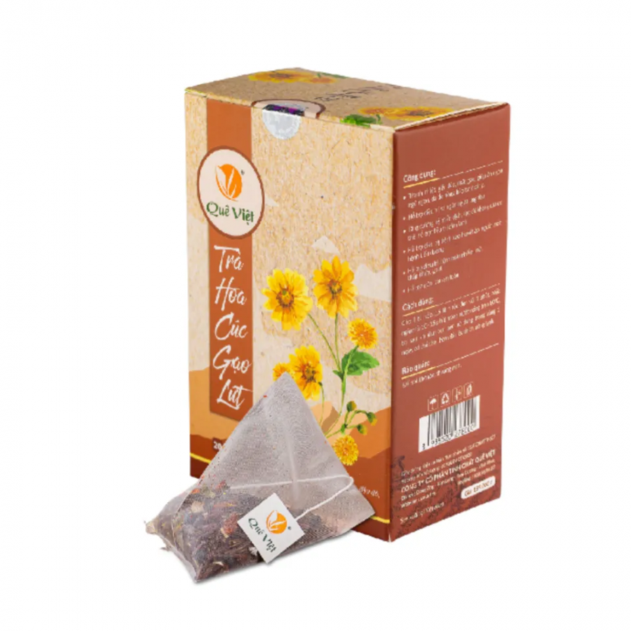 | Tên sản phẩm | Trà hoa cúc gạo lứt Quê Việt hộp 20 túi lọc |