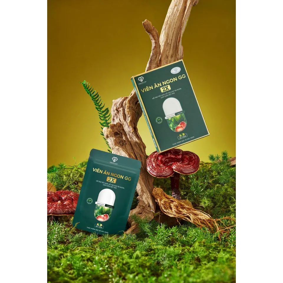 Viên Ăn Ngon GG 2X Gorgeous Gain chiết xuất thảo mộc lành tính giúp hỗ trợ tiêu hóa, giúp ăn ngon và hỗ trợ giảm mệt mỏi. Sản phẩm phù hợp với cả người lớn và trẻ nhỏ, giúp tăng cân tự nhiên, lâu dài, không gây tích nước cho cơ thể.