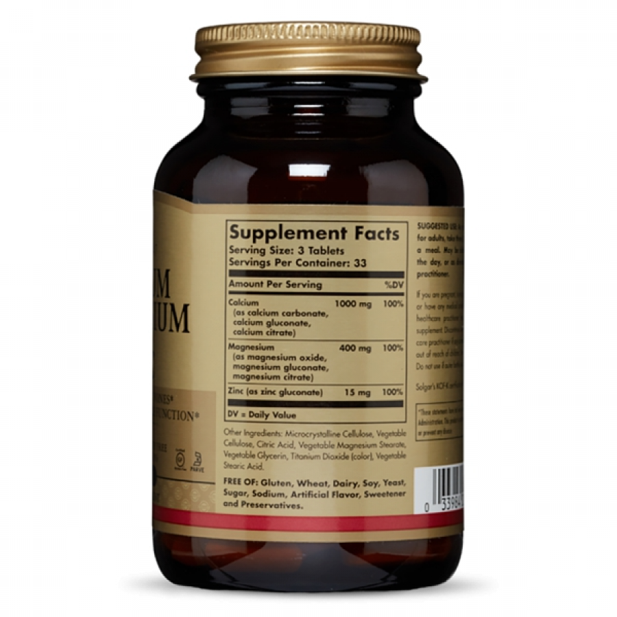 Viên bổ sung kẽm, canxi và magie Solgar Calcium Magnesium Plus Zinc 100 viên