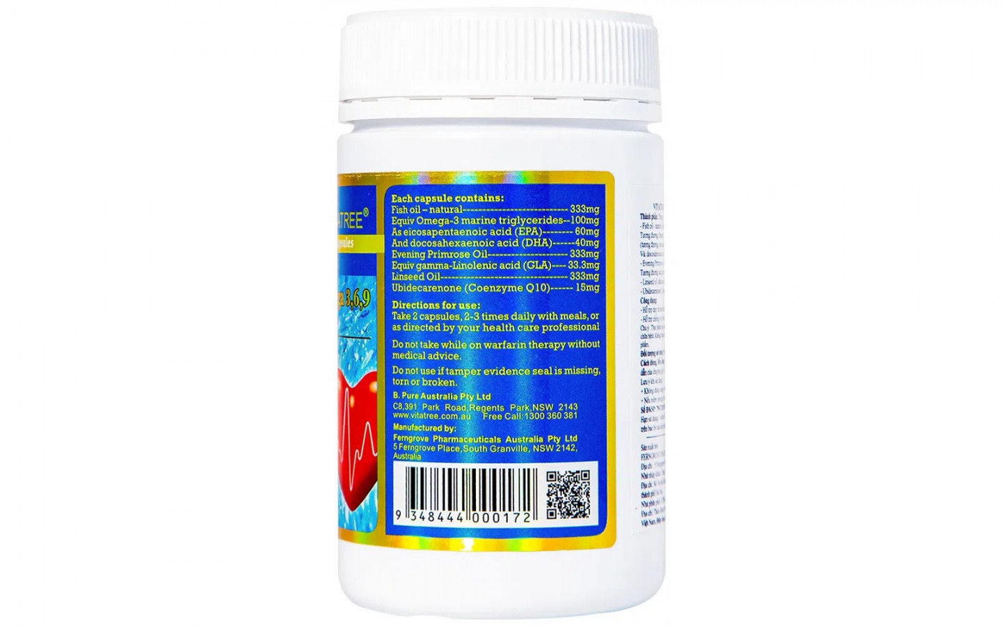 Viên bổ sung Mega Omega 3 6 9 Plus Q10 Vitatree Úc lọ 120 viên