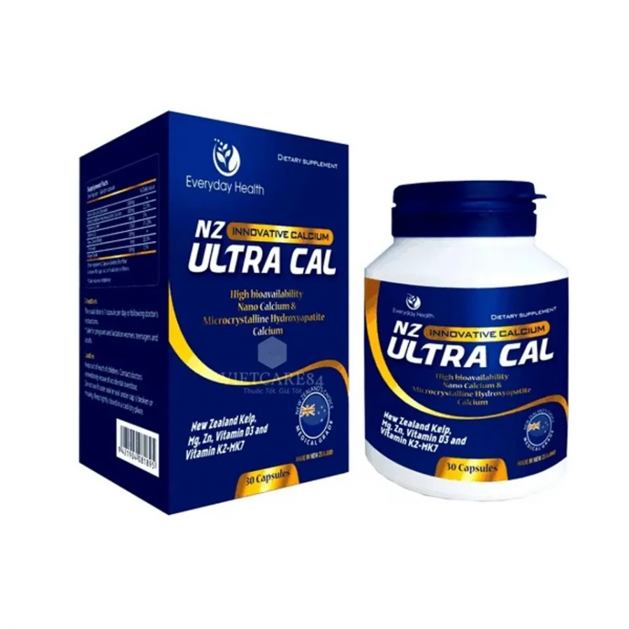 Viên uống NZ-Ultra Cal Everyday Health bổ sung Canxi nano và canxi hữu cơ,Vitamin D3, K2-MK7, ... giúp hỗ trợ giảm nguy cơ loãng xương, giúp hệ xương chắc khỏe.
