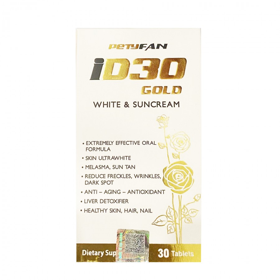 Viên uống chống nắng dưỡng trắng ID30 Gold White & Suncream thích hợp cho cả nam và nữ từ 18 tuổi trở nên, hỗ trợ chống nắng dưỡng da từ bên trong, tốt cho người đang có vấn đề về da như nám, thâm mụn, tàn nhang, da khô sạm,...