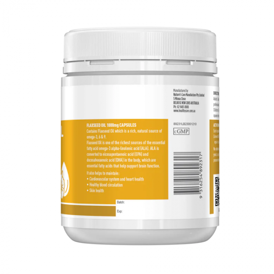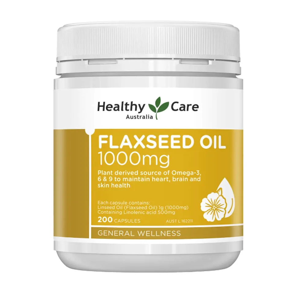 Healthy Care Flaxseed Oil 1000mg chiết xuất từ những hạt lanh của Úc, cung cấp omega 3, 6 & 9 tự nhiên giúp hỗ trợ sức khỏe tổng thể và giúp duy trì làn da khỏe mạnh.
