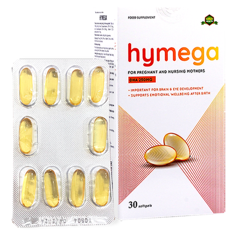 Viên uống DHA Hymega cho bà bầu với công thức DHA 250mg độ tinh khiết cao bằng công nghệ chiết lạnh PCET. DHA và EPA được chiết xuất từ cá hồi nước lạnh châu Âu, giúp bổ sung nguồn DHA, dinh dưỡng cho mẹ bầu trong thời gian mang thai và sau sinh.