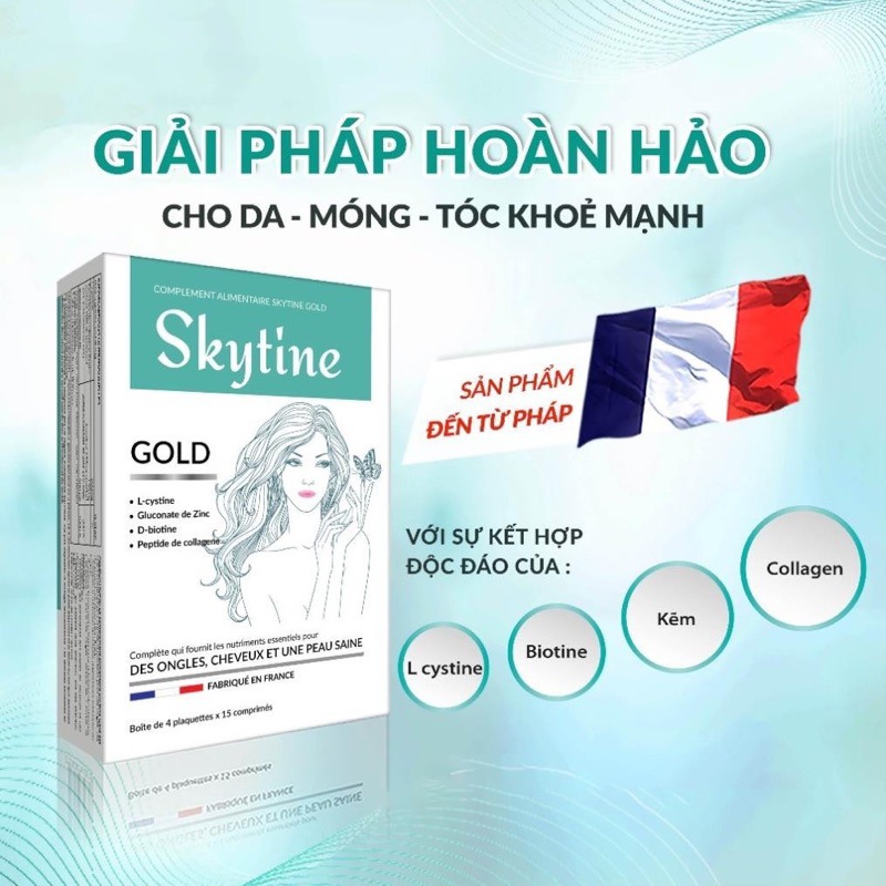 Viên uống hỗ trợ làm đẹp da, tóc và móng Skytine Gold giúp bổ sung L-cystine, Collagen Peptide , Kẽm...giúp hỗ trợ làm đẹp da, tóc và móng.